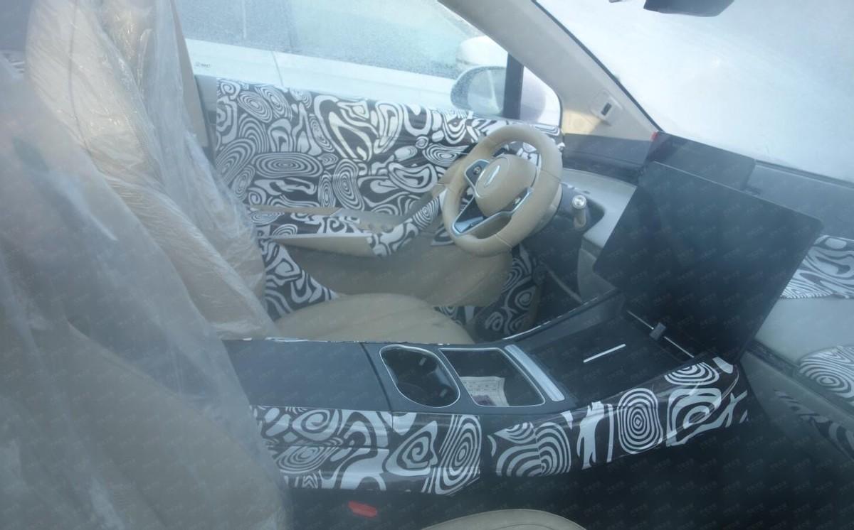 內(nèi)飾部分,根據(jù)此前曝光的諜照來看,依舊是極簡的設(shè)計風(fēng)格,雙層臺面的設(shè)計搭配上前置的液晶儀表盤以及中控屏幕,非常有設(shè)計感,異形方向盤采用兩個滾輪按鈕,并在A柱區(qū)域配備人臉識別。