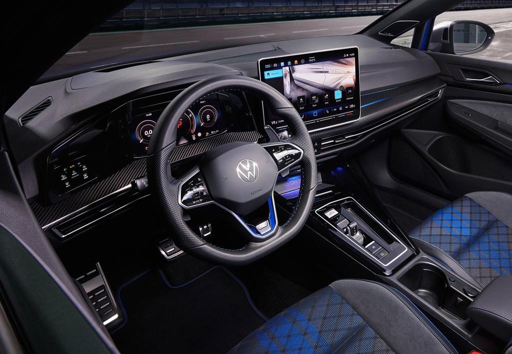 車尾部分看上去給人感覺較為敦實,兩側狹長的C字型尾燈組設計,點亮之后有著不錯的辨識度,為了體現自身與眾不同的身份,標準版還配備有超大尺寸的擾流板設計,相較于旅行版,標準版擾流版給人感覺更加的夸張,加上下方雙邊雙出的排氣布局,從而進一步增強了整體的戰斗感。內飾設計方面,新款大眾高爾夫R家族第一眼看過去給人感覺運動感十足,10.2英寸的全液晶儀表盤+12.9英寸的懸浮式大屏,提升了幾分應有的科技氣息,此外,前排還配備有運動型座椅,細節之處的“R”字母標識,增添了幾分應有的檔次感,在做工以及用料上,看上去給人感覺也很扎實,大面積皮革材質的包裹,加上碳纖維材質的覆蓋,以及氛圍燈的點綴,從而進一步增強了整體內飾的檔次感。