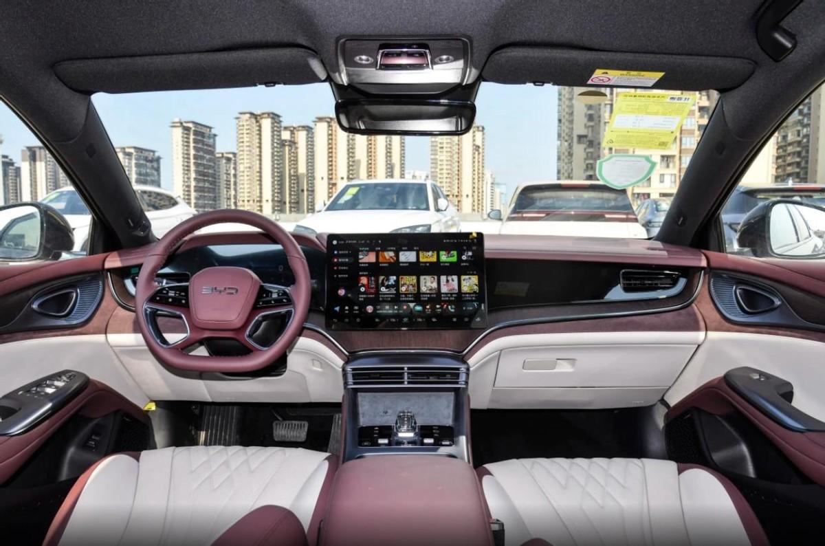 在車身尺寸方面,海豹07 DM-i長寬高分別為:4980/1890/1495毫米,軸距為2900毫米,車身數據與現款海豹DM-i保持一致,并沒有進行提升或縮減。車尾部分看上去給人感覺圓潤且飽滿,采用貫穿式設計的尾燈組,點亮之后相信會有著不錯的視覺效果,中間碩大的“BYD”字母標識,進一步增強了整體的品牌辨識度。內飾設計方面,作為參考,海豹07 DM-i或將會延續現款海豹DM-i的設計風格,只不過,在部分細節以及配置上,新車或將會有所調整,整體給人一種簡約且科技的視覺感受,10.25英寸的全液晶儀表盤,加上15.6英寸的自適應旋轉中控大屏,十分吸引人的眼球,此外,新車或將還會搭載搭DiLink 100車機系統,并且或將還會配備后排隱私玻璃/全景天窗/手機無線充電等實用配置。