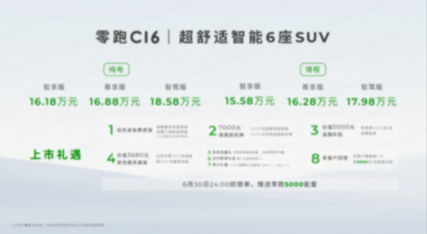 零跑C16曾在今年4月份開啟預售,當時零跑創始人、CEO朱江明曾明確表示,零跑C16的頂配價格不會超過20萬。兩個月后,零跑C16正式上市,純電版本售價16.18萬-18.58萬,增程版本售價15.58萬-17.98萬,朱江明確實兌現了承諾。