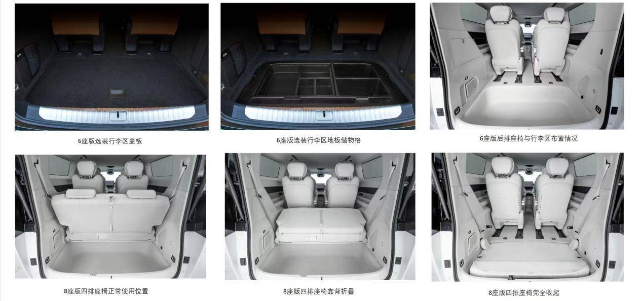 甚至,這臺車還提供4排8座版本,第四排座椅采用折疊式設計,在不需要時還可折疊收進后備廂的下沉空間內,讓后備廂依舊可以擁有一個純平的儲物空間。