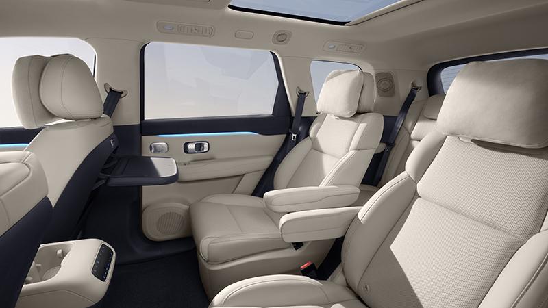 前排座椅標(biāo)配記憶及主駕迎賓功能,二排的獨(dú)立座椅也有加熱和通風(fēng)功能,并擁有最大145°躺姿。在副駕座椅靠背上海配備了小桌板,可通過(guò)語(yǔ)音指令“打開(kāi)小桌板”,副駕及后排座椅會(huì)自動(dòng)調(diào)整位置、角度,確保桌板水平和前后距離適合用餐、辦公、寫(xiě)作業(yè)等場(chǎng)景。