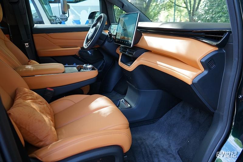 翼真L380的車內(nèi)采用上灰下橙的撞色效果,一進(jìn)入車內(nèi),包括中控臺(tái)、座椅和門板采用的“愛馬仕橙”配色就瞬間拉高了整體的豪華感。一般來說MPV車型在車內(nèi)都會(huì)用黑、白、灰等冷色調(diào),匹配商務(wù)出行的氛圍感,比較少會(huì)用這種鮮亮的色彩。但是翼真L380的這個(gè)“愛馬仕橙”配色絲毫不會(huì)讓車內(nèi)感覺輕浮,反而能滿足高端人士對(duì)品位的追求。