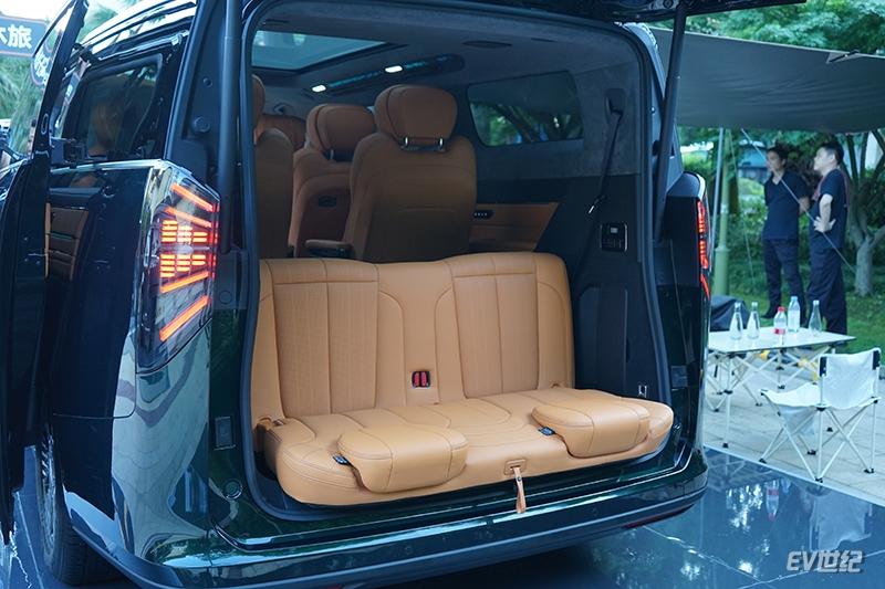 此外,8座版翼真L380的第四排還可以將座椅反向放倒,可以讓用戶坐在車尾欣賞夕陽,也可以在河邊坐在上面釣魚,非常愜意。