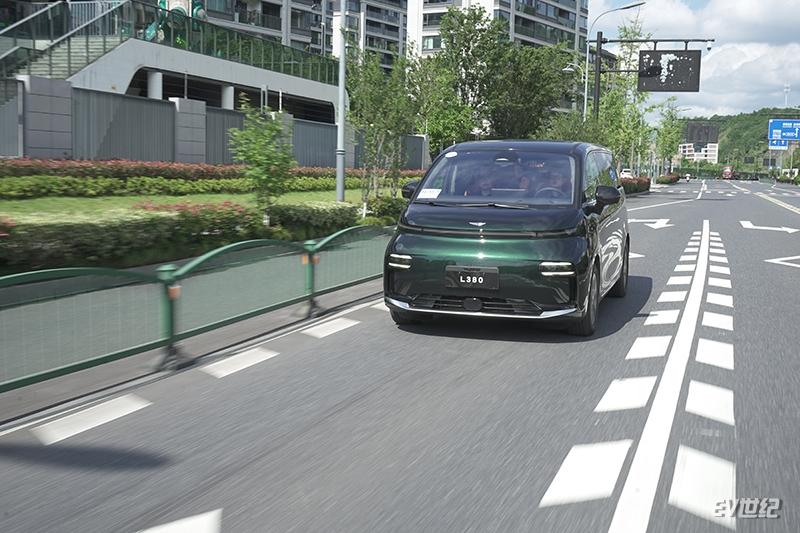 翼真L380有兩驅(qū)和四驅(qū)兩種動(dòng)力版本,單電機(jī)版最大功率200kW,峰值扭矩343N·m,我們當(dāng)天試駕的四驅(qū)版電機(jī)最大功率400kW,峰值扭矩686N·m,零百加速最快可達(dá)6.5秒,最高時(shí)速可達(dá)180km/h。