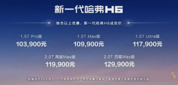 老款H6的指導價是11.59到14.69萬,新款計算了官方權益后,定價區間是10.39到12.99萬,整體門檻下降了1萬多元。此前指導價14.69萬的2.0T四驅版,現在降到了12.99萬。