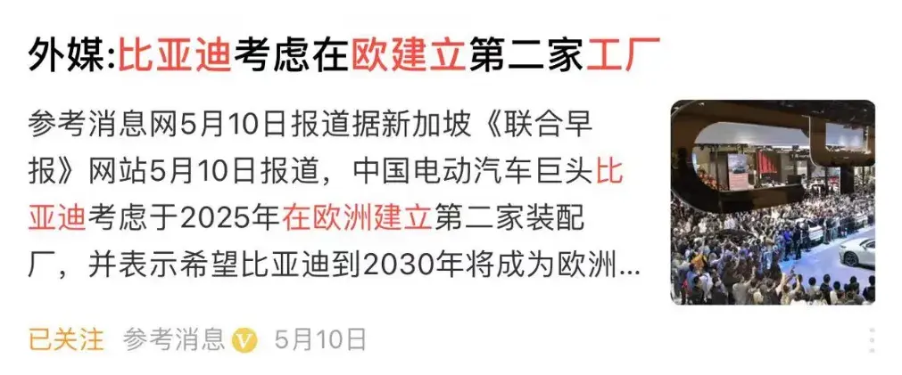 目前比亞迪已經(jīng)在匈牙利建廠了,還正在考慮建第二家工廠。