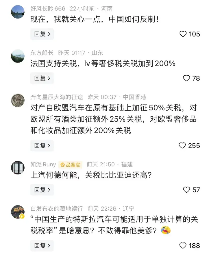歐盟宣布對(duì)我們的電車加關(guān)稅后,我看到很多網(wǎng)友都呼吁我們要對(duì)等制裁: