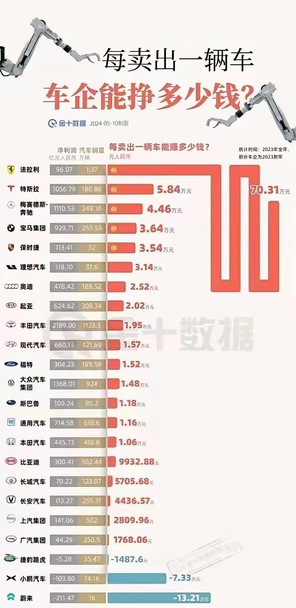數(shù)據(jù)的可信度還是相當(dāng)高的,基本與此前金十?dāng)?shù)據(jù)統(tǒng)計(jì)的2023年車企單車?yán)麧?rùn)相當(dāng)。這也能引發(fā)我們的一些思考,隨著新能源銷量的大幅猛增,國(guó)產(chǎn)車企的影響力有所提升,但是盈利能力,與海外這些國(guó)際性的大車企,還是存在相當(dāng)大的差距,尤其是在國(guó)內(nèi)市場(chǎng)價(jià)格戰(zhàn)逐漸升溫的背景下。