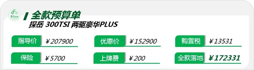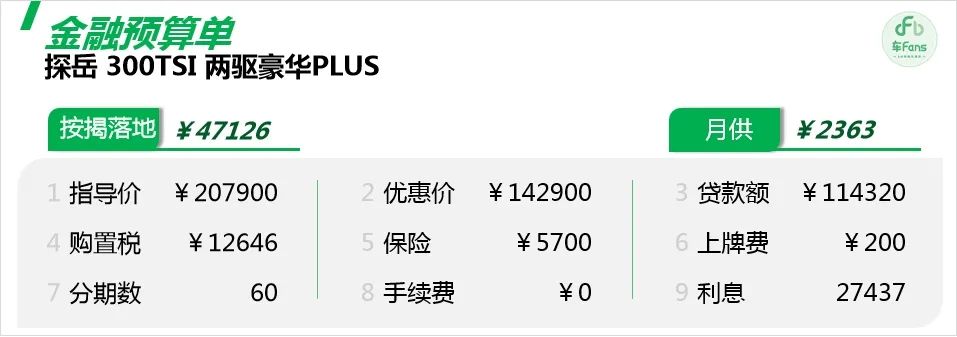 探岳去年優惠4萬左右,現在已經有5萬多優惠了,如果客戶做60期車貸的話,則能達到6萬多。外面的行情在不做分期的情況下已經可以干到6萬多優惠了。