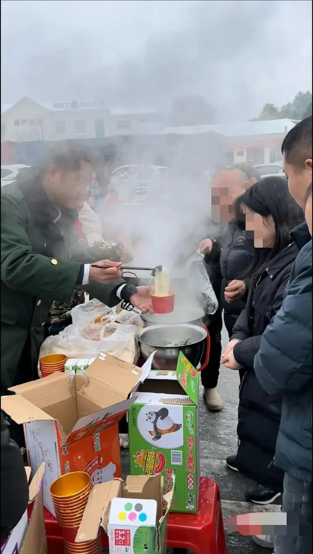 舒明副局長與團(tuán)隊(duì)頂著寒風(fēng),緊急趕到福銀高速隨州收費(fèi)站口。舒明自稱是隨州市隨縣文旅局副局長,與十多名工作人員一同,攜帶鍋碗瓢盆和煤氣罐,為滯留旅客準(zhǔn)備了1000桶方便面、數(shù)百個(gè)雞蛋、面包以及當(dāng)?shù)靥禺a(chǎn)隨州泡泡青。