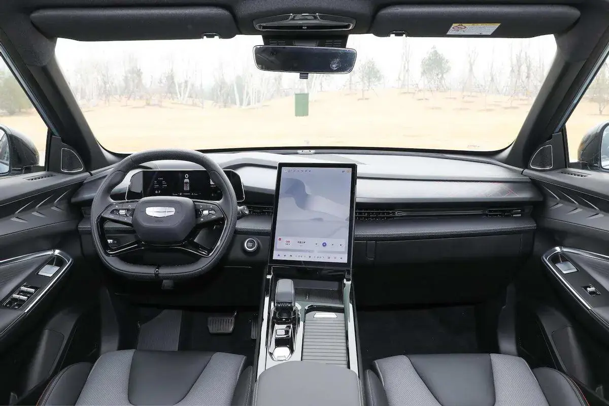 內飾設計上,中控臺布局合理,大量軟質材料的運用提升了車內的質感。配備四輻式方向盤、10.25英寸的全液晶儀表和13.2英寸2K級數字中控大屏,內置全新一代吉利銀河OS系統和高通驍龍8155智能芯片,有效提升了科技感。同時,中控屏往左傾斜了一定角度,對駕駛員更加友好,再配合上仿麂皮材質座椅,并且還帶電動記憶以和加熱功能,進一步提升了駕乘舒適性。