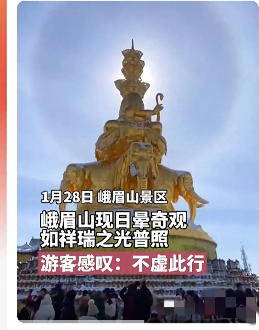 峨眉山金頂驚現(xiàn)巨型日暈,游客直言不虛此行。在那一刻,時間似乎停滯了,心靈得到了凈化。讓我們一起踏上這個神奇的旅程,去感受大自然的恩賜,感受心靈的觸動。峨眉山,等待著你的到來。