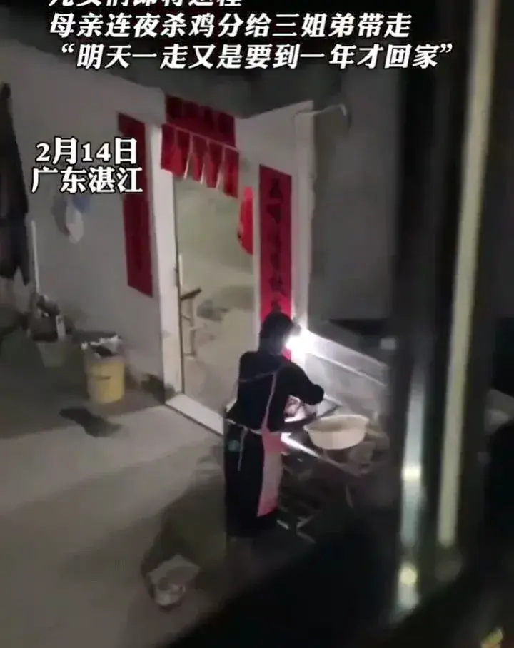據了解,為了給即將分別的三個孩子帶來一份特殊的禮物,母親在返程前夜連夜殺了10只雞,精心烹飪后分給了每一個孩子。這樣的舉動雖然簡單,卻蘊含著母親深深的思念和對孩子們的祝福。