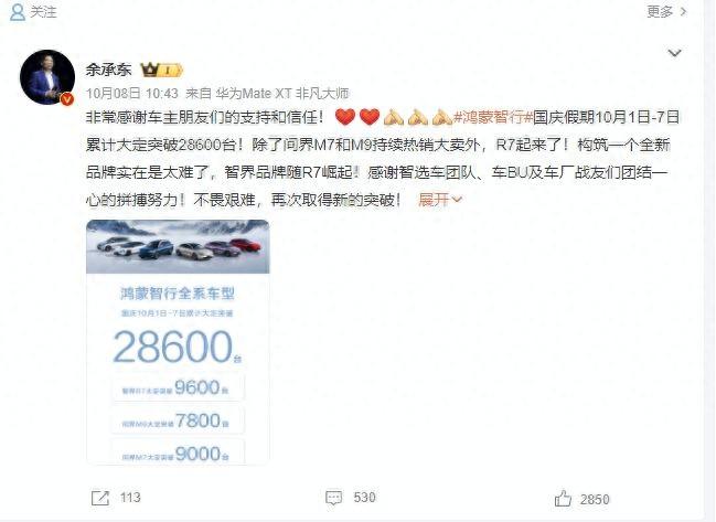 其中,鴻蒙智行每天都會公布旗下界品牌的大定數字,亮眼的表現引起廣泛討論。