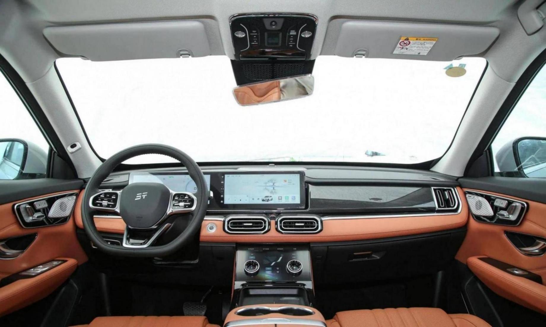 內飾方面采用雙聯屏,液晶儀表以及中控屏幕均為12.3英寸。中央還設有空調控制面板,采用觸控屏幕加物理旋鈕的調節方式。整體內飾采用拼色設計,大量采用皮質包裹,看上去的質感非常不錯。