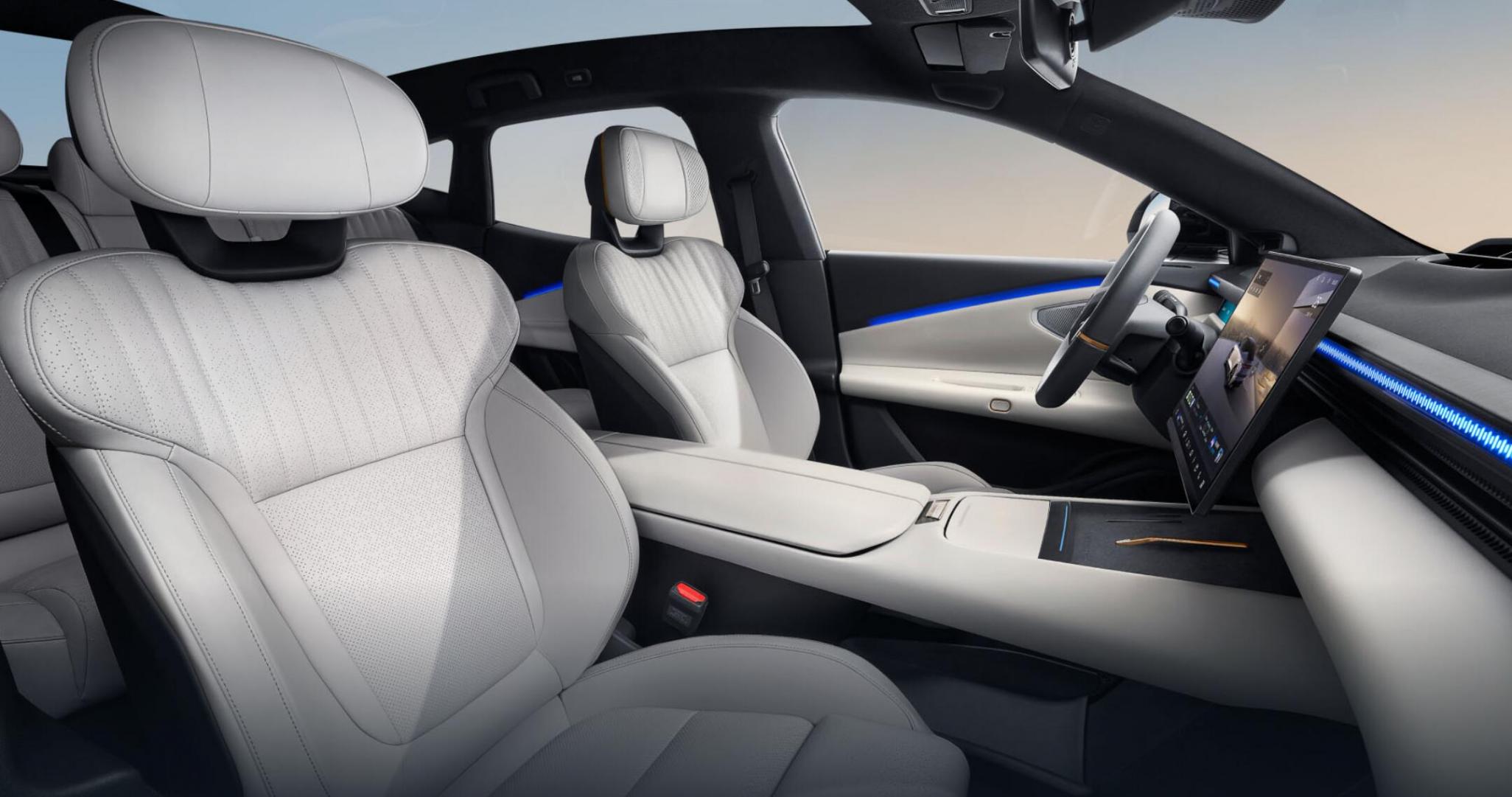 小米SU7:內(nèi)飾設(shè)計以環(huán)繞式座艙為主導,整體空間以反弧形的曲面為主,采用鏤空細節(jié)和懸浮儀表臺,配備7.1英寸全液晶儀表盤+16.1英寸懸浮式中控屏,內(nèi)置高通驍龍8295芯片,搭載小米澎湃OS操作系統(tǒng),支持多種互聯(lián)功能。
