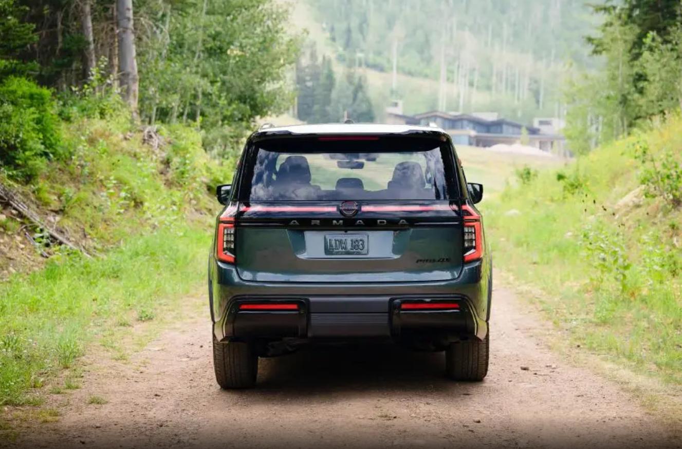 日產(chǎn)途樂定位大型SUV,整車還是比較高大,魁梧的,體量感也是相當足,車頂采用懸浮式設(shè)計,Pro-4X版本還提供全地形輪胎,黑色運動輪轂,車尾還提供擾流板,尾燈經(jīng)過熏黑處理后,提升了車尾的運動氣息,尾燈中間還提供品牌字母標識。
