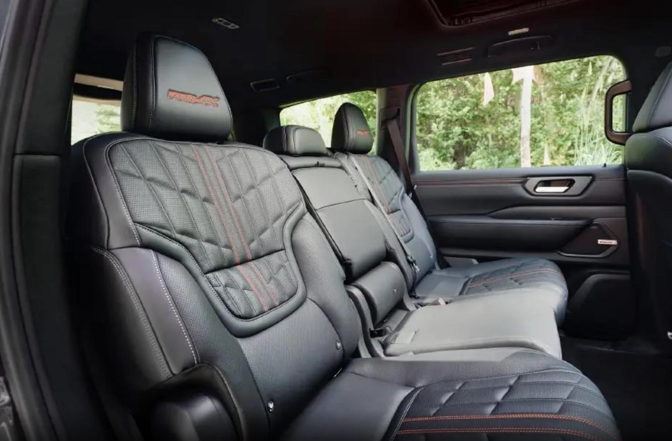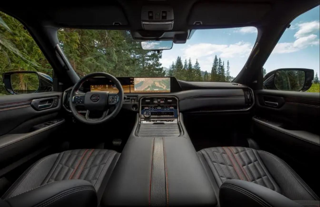 全新日產(chǎn)途樂在內(nèi)飾方面,現(xiàn)代感有著明顯的提升,中控臺還提供連體式液晶屏幕,全液晶儀表和中控屏幕的尺寸均為14.3英寸,換擋機構(gòu)采用按鍵式,座椅頭枕還提供Pro-4X字母刺繡,內(nèi)飾還提供大量紅色縫線,提升了車內(nèi)的運動氣息。
