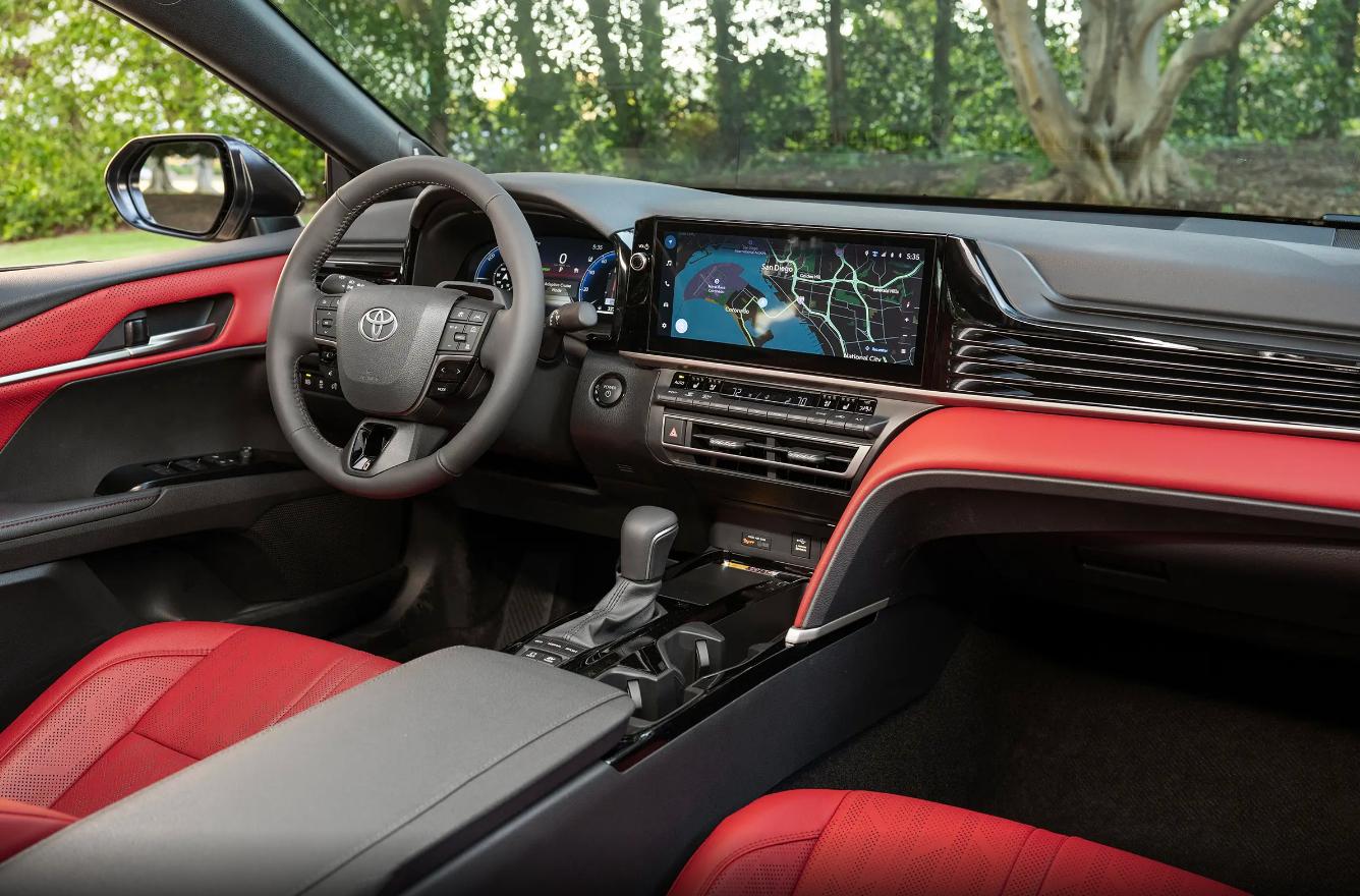 凱美瑞2.5L HEV XSE AWD版本在內(nèi)飾方面,跟國內(nèi)的車型還是有一些區(qū)別的,能看出一些雷克薩斯車型的影子,該版本內(nèi)飾由黑色和酒紅色組成,中控臺還增加了鋼琴烤漆面板,中控屏的尺寸為12.3英寸,該版本還支持無線充電,豐田Safety Sense 3.0,JBL音響等配置。