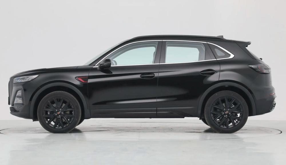 來到車身側面,2025款紅旗HS5在側身設計上較為簡單,車身的線條也是較為飽滿,而且車頂還帶有一些溜背式的設計語言,其中玄影版車型在側身設計上,均采用了黑色的涂裝處理,其中也包括輪轂,但是紅旗那標志性的側旗標在這臺車身上也沒有缺席,而且部分車型的側旗標還擁有迎賓功能,當車輛啟動的時候,側旗標會在地上投影出一個“展翼”的光標,由此我們不難看出,2025款紅旗HS5的整體美觀程度還是表現不錯的。