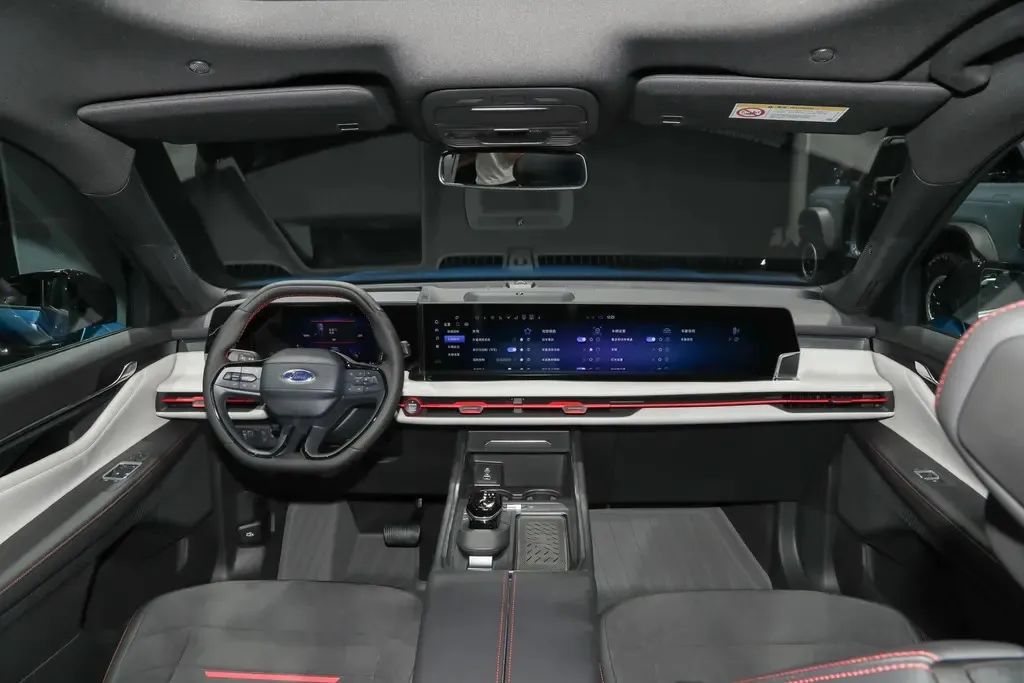 內飾最大亮點是12.3英寸全液晶儀表盤+27英寸中控屏,大幅提升了車輛內部的科技感。中控大屏內部還集成了福特SYNC+2.0智行互聯車機系統。此外,全新銳界L還配備有B&O音響,從而進一步優化了用戶的視聽體驗。