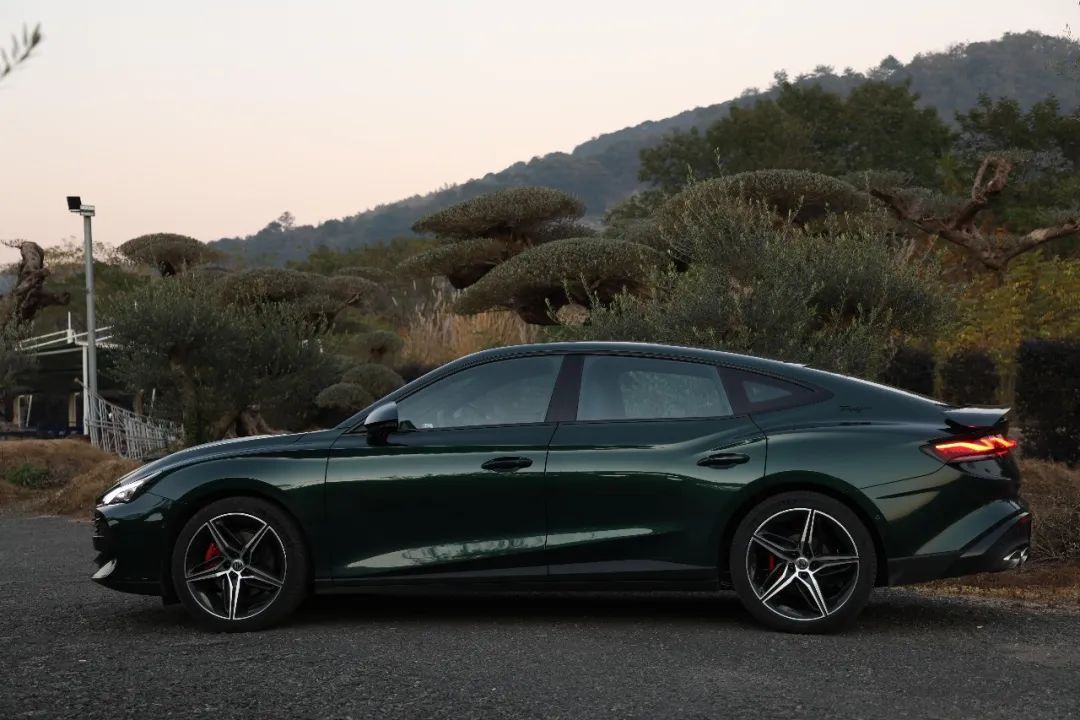 車身則繼續延續了溜背式轎跑車型的風格,根據款型不同,可選擇五輻造型和密條輻造型輪輞,輪胎尺寸還有18和19英寸兩種規格,并且里面還搭載了紅色卡鉗。車身尺寸方面,新車長寬高沒有發生改變,依然是4884/1889/1447mm,軸距為2778mm。車尾采用掀背尾門設計,三段式的尾翼以及雙邊共四出式排氣系統,并且還是帶有可手動開閉的閥門,進一步加深新車的運動氣息。