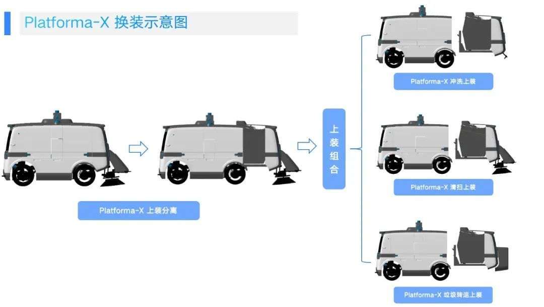 以仙途智能今年3月上新的Platforma-X無人駕駛環(huán)衛(wèi)裝備為例,其采用“1個底盤+3個上裝”,像搭積木一樣實現(xiàn)了清掃、沖洗、垃圾清運三種模式的靈活變裝。也就是說,運營方不需要單獨采購不同的環(huán)衛(wèi)車型,節(jié)約50%的購車成本。不僅如此,Platforma-X采用無駕駛室設(shè)計,它可以自主完成啟動自檢、定時作業(yè)、傾倒垃圾、自動充電、自動加水等任務(wù),讓司機和充電加水的人工成本降低至0。綜合來算,Platforma-X“一車多用”可將環(huán)衛(wèi)作業(yè)成本降低近70%,真正做到“省錢”的狀態(tài)。
