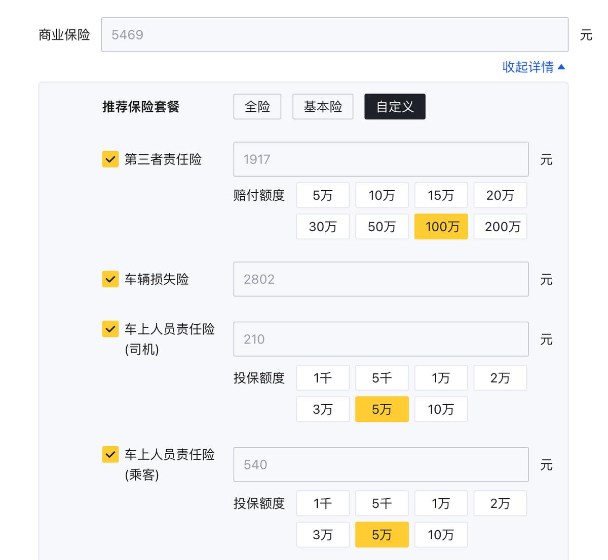 亞洲龍的主要保險成本包含車船稅、交強險以及基本商業保險,其中,車船稅為400元/年、交強險為950元/年,而包含有100萬第三者責任險、5萬車上人員責任險(含司機+乘客)以及車輛損失險的商業保險約為5469元/年,我們按照首年不出險、次年保費遞減10%計入交強險與商業保險,計算可得亞洲龍前三年綜合保險成本約為18531元、平均約為6177元/年。