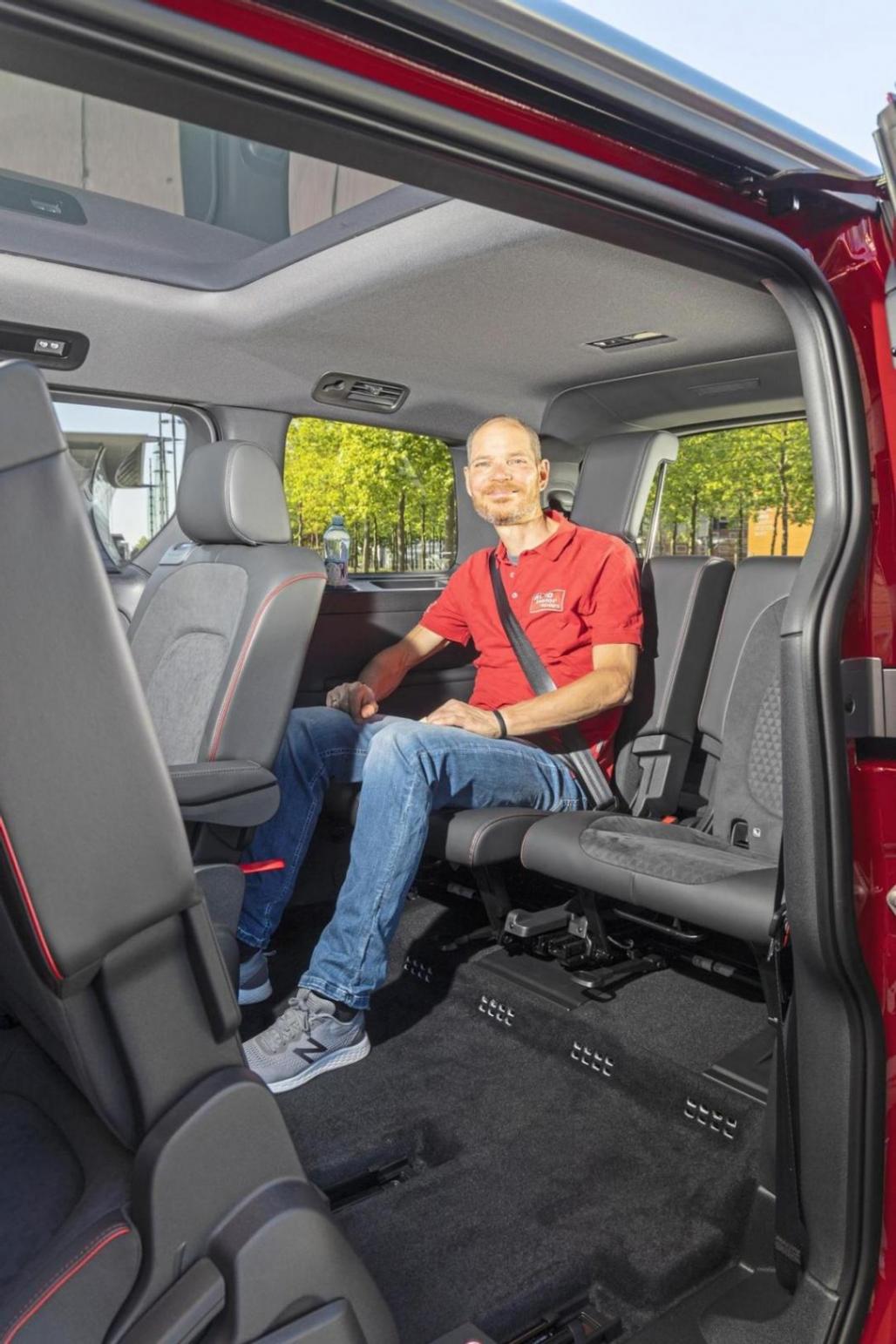 這兩種ID.Buzz車型現(xiàn)在都可以配備額外的座椅,短軸版可額外增加至六座(2-2-2布局),價格為1261歐元;長軸距可增加至七座(2-3-2布局,價格為1351歐元)。在長軸距版中,通過延長19.2厘米的滑動門和第二排縱向滑動的外側(cè)座椅,提供了方便的進入功能,因此可以輕松進入兩個折疊座椅中。舒適性和尺寸更適合成年人乘坐,而長軸距帶來的空間也非常寬敞。如果需要運送行李,所有后排座椅都可以折疊到中間地板高度,這樣就可以將行李廂容積(306~2469升)分為地下層和夾層。此外,還可以拆卸兩個折疊座椅。不過,由于其重量較大,我們不建議這么做。