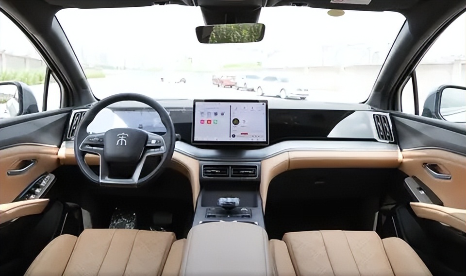 車內采用了大面積軟質材料加以覆蓋,在觸感上還是比較細膩的。方向盤采用了皮質包裹,中間是“宋”字LOGO,中控提供全液晶儀表和15.6英寸的懸浮式中控屏,內置DiLink系統,車機界面清爽干凈,操作流暢。下方配有造型精致的電子檔把,旁邊保留了部分啟動、駕駛模式選擇以及多媒體的控制按鍵等,科技氛圍與實用性均營造出色。