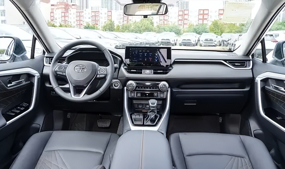 車內風格頗為簡約,中控臺利用大量平直線條勾勒,搭載了三輻式方向盤、12.3英寸液晶儀表(入門版車型使用4.2英寸或7英寸儀表盤)、10.25英寸懸浮中控屏。,車機配備豐田智行互聯車技系統,支持百度CarLife/蘋果CarPlay/華為HiCar智能手機互聯,除入門都市版車型外,其他車型還具備遠程控制、智能語音交互、車載Wi-Fi/微信以及OTA升級功能。