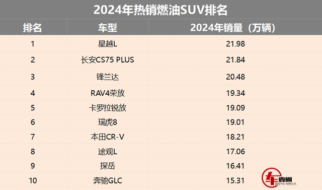 進入1月,很多品牌都相繼公布了年銷成績,從各家總數據來看,不太能反映出來具體車型的銷量情況。為了讓大家購車有所參考,今天《車壹圈》就為大家整理了2024年銷量最高的10款燃油SUV,涵蓋了市場熱門的自主與合資車型,并且每款車都有鮮明的亮點。下面,就與圈哥一起來了解下吧。