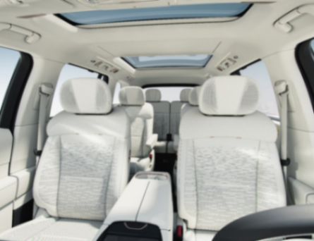 車內(nèi)座椅布局為2+3+2,均采用真皮包裹。前排座椅具備電動調(diào)節(jié)、加熱、通風(fēng)、按摩和記憶功能,第二排座椅有加熱、通風(fēng)、按摩和一鍵進出功能。后兩排座椅可放平,形成平整平臺。就功能性層面來看,唐L比唐DM/EV明顯更舒適。