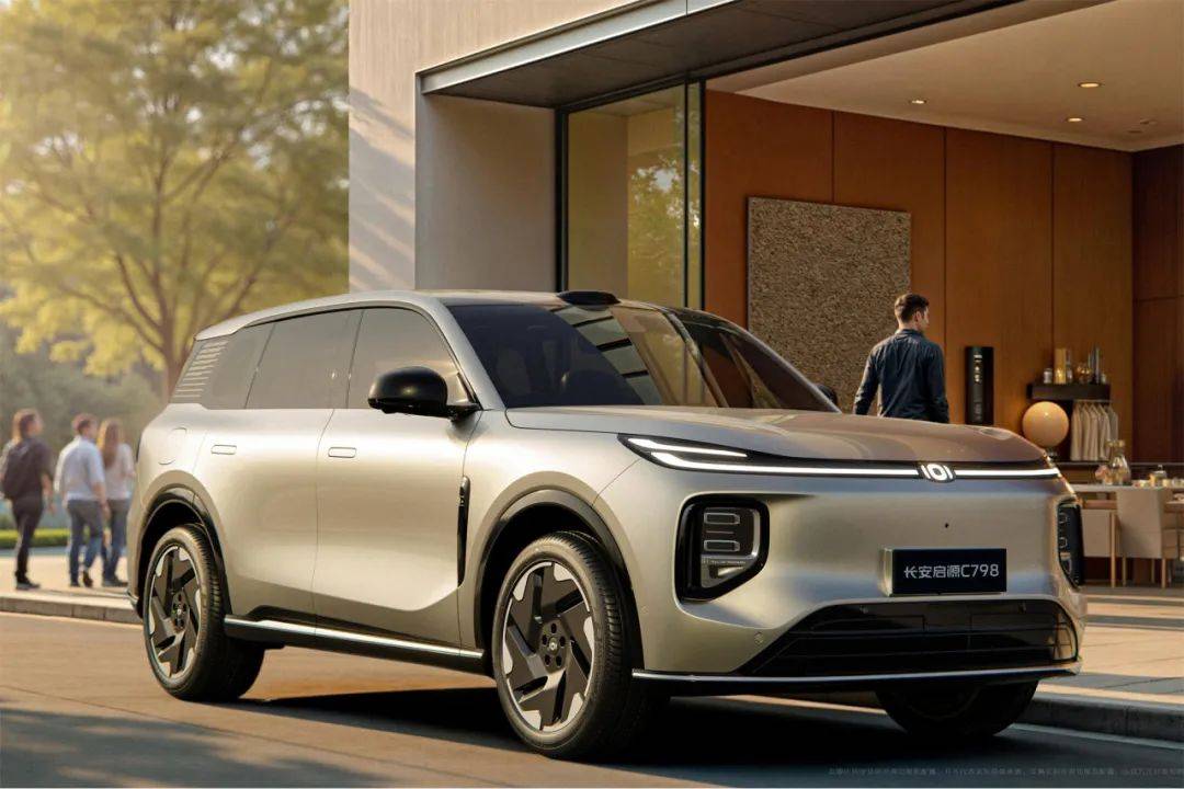 長安啟源C798定位中大型SUV,外觀設計風格偏成熟穩重。值得關注的是,長安啟源C798車頂配備了激光雷達,預計會采用高階智駕系統。