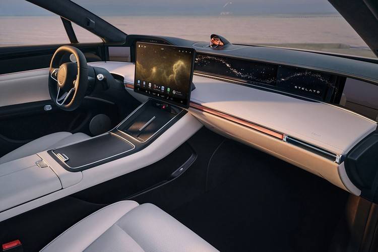 內飾的中控被大量屏幕包圍,隱藏式空調出風口顯得非常別致。
