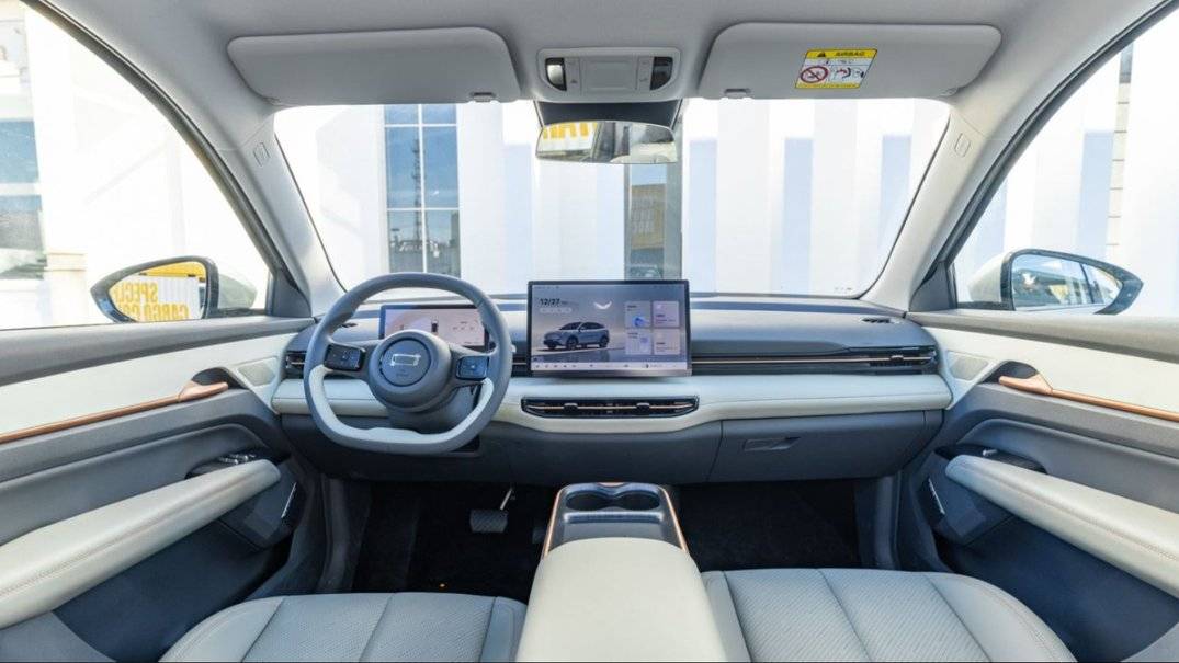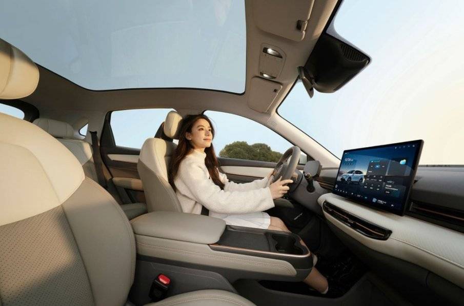 而悅意03的內飾同樣討人喜歡。對稱環抱式座艙通過柔和光線與暖科技布局,營造出簡約、時尚、溫暖的家居氛圍。