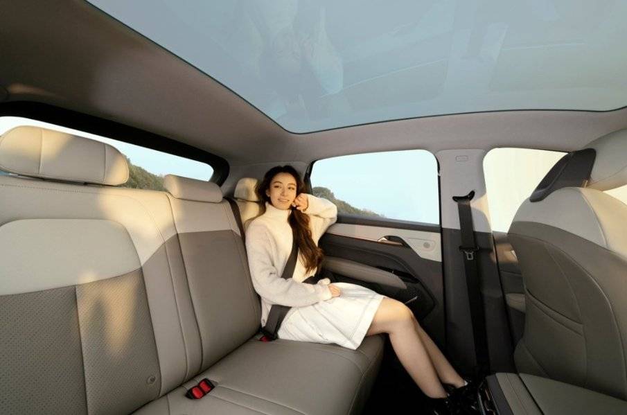 悅意03的乘坐舒適性也非常好。1.2m²蒼穹之頂全景天幕,讓車內光線更加通透,尤其晚上躺在云舒座椅上,就能看到新年的煙花璀璨和爛漫。