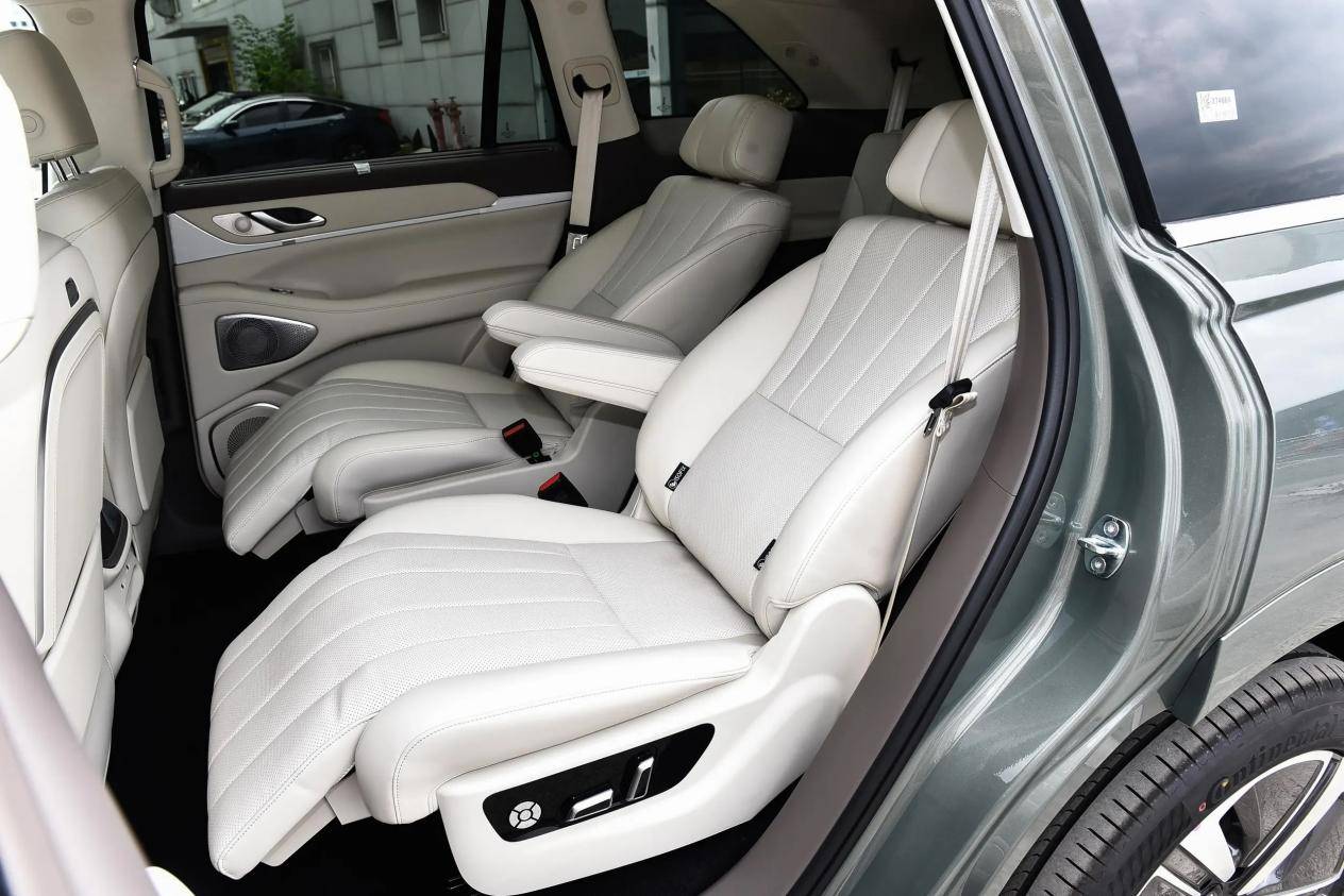 尺寸不小,藍(lán)山比理想L8還要略大一些,其長(zhǎng)寬高分別為5156*1980*1805毫米,軸距3050毫米,比理想L8長(zhǎng)45毫米,車內(nèi)空間比較寬裕,同級(jí)別中,藍(lán)山的乘坐空間其實(shí)沒(méi)什么好擔(dān)心的,即便是第三排的座椅高度也不低,填充比較厚實(shí),還標(biāo)配加熱,乘坐175厘米以下的人員還是比較舒適的,前兩排就更不用擔(dān)心了,實(shí)車體驗(yàn),身高180厘米乘員前兩排都還有1拳多的頭部空間余量,二排座椅調(diào)至最后,腿部空間非常寬裕,可以把腿托打開,呈仰躺姿勢(shì)。