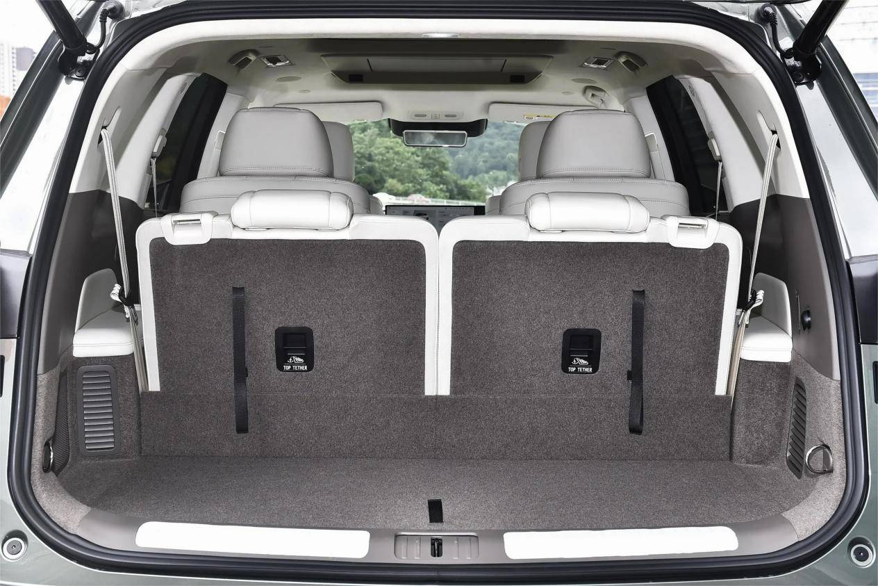 后備廂常規(guī)容積349升,受尺寸和軸距的影響,后備廂縱深不算大,能放得下4個(gè)小行李箱和一些背包等行李,如果是換成24英寸行李箱可以放下2個(gè),滿載攜帶行李確實(shí)有點(diǎn)局促,不過(guò)非滿載情況下,則可以通過(guò)放倒第三排的部分座椅或全部放倒來(lái)拓展空間,最大能拓展到1150升,還是很能裝的。