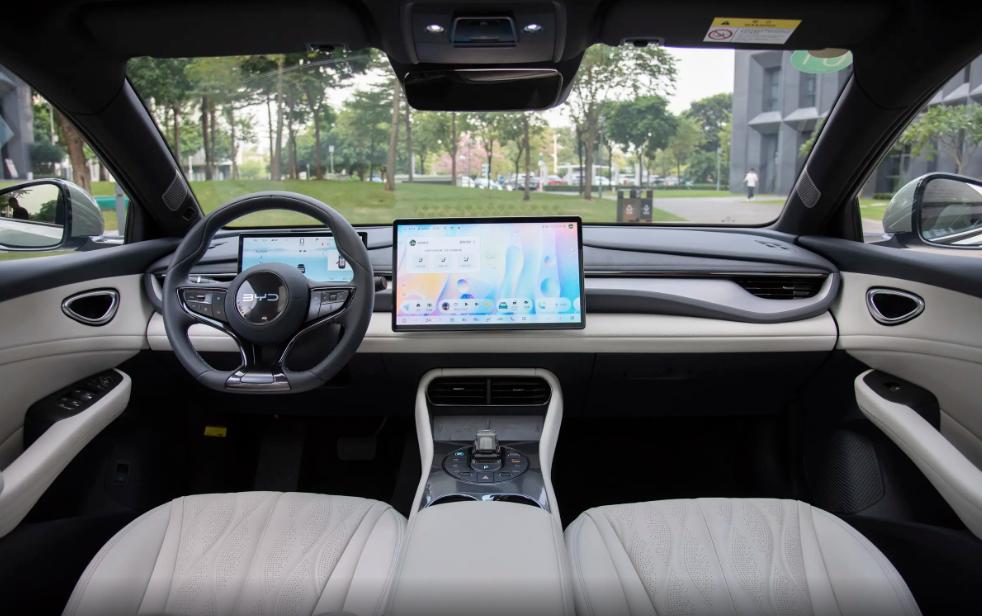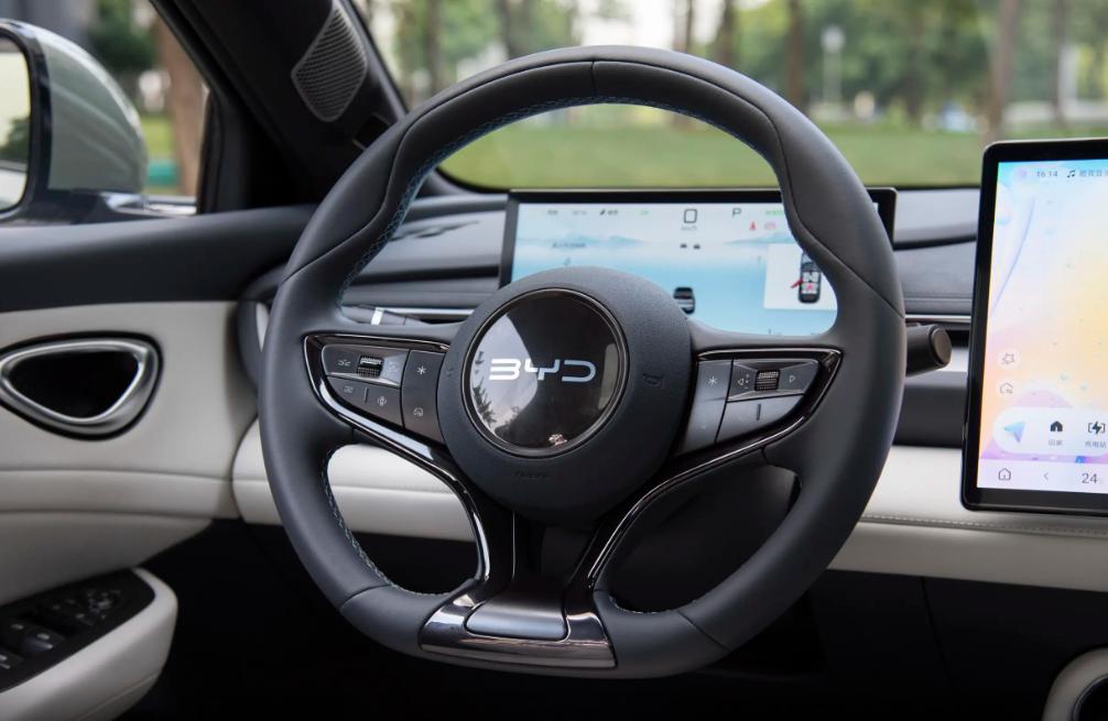 說到日常用車場景,現(xiàn)在大部分普通消費者都追求科技體驗,海豹06GT不僅在中控臺上為用戶提供大尺寸可旋轉(zhuǎn)中控屏,還為用戶提供了W-HUD抬頭顯示系統(tǒng)、手機無線充電功能以及L2級智能輔助駕駛配置(除入門版車型),可以讓消費者得到優(yōu)秀的使用體驗。我個人比較喜歡這款車型多功能方向盤的造型,它不僅使用高亮的黑色元素裝飾,造型也非常個性,能給人較強的運動氣息。