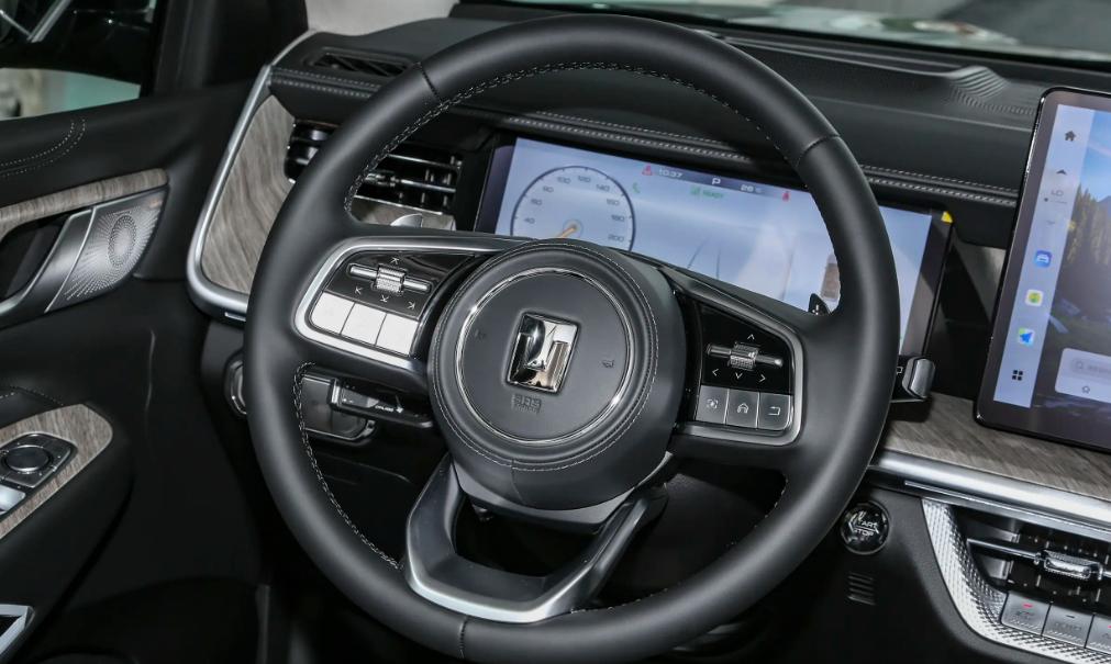 當進入坦克500 Hi4-T的座艙內部,大家可以看到這款車型使用了大量木紋飾板裝飾,除去木紋飾板外,高檔的軟質材料也有很多,用一句潮流話來說,就是“肉眼可見的豪華”。在坦克500 Hi4-T的中控臺上,懸浮式中控屏展現科技氣息,除去常規的智能互聯功能,它還搭載了HUD抬頭顯示系統,擁有L2級智能輔助駕駛配置,能夠給人遠超其它硬派越野車型的智能化體驗。