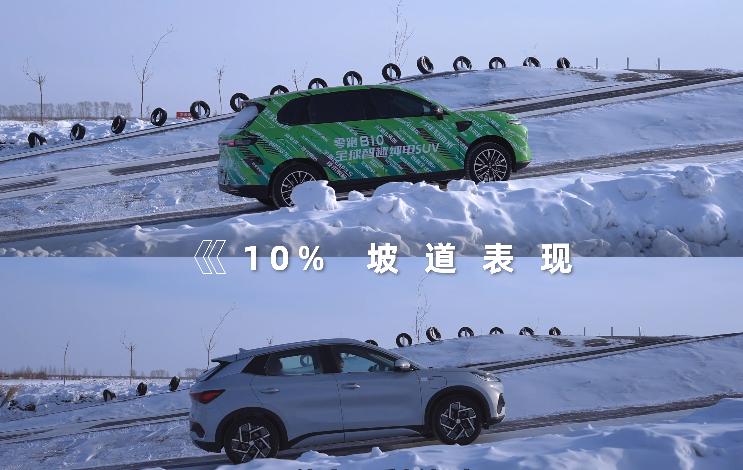 零跑B10雖然是一臺后驅車,但是穩定性也是能夠媲美很多四驅車,比如說在20%冰雪路面爬坡測試項目中, 零跑B10很絲滑的完成了測試,而比亞迪元Plus出現了打滑的現象,沒有完成。這一功能在東北太常用了,很多東北用戶如遇到地庫坡道結冰、積雪情況,有可能發生無法通行情況,而零跑B10卻能能夠輕松應對。