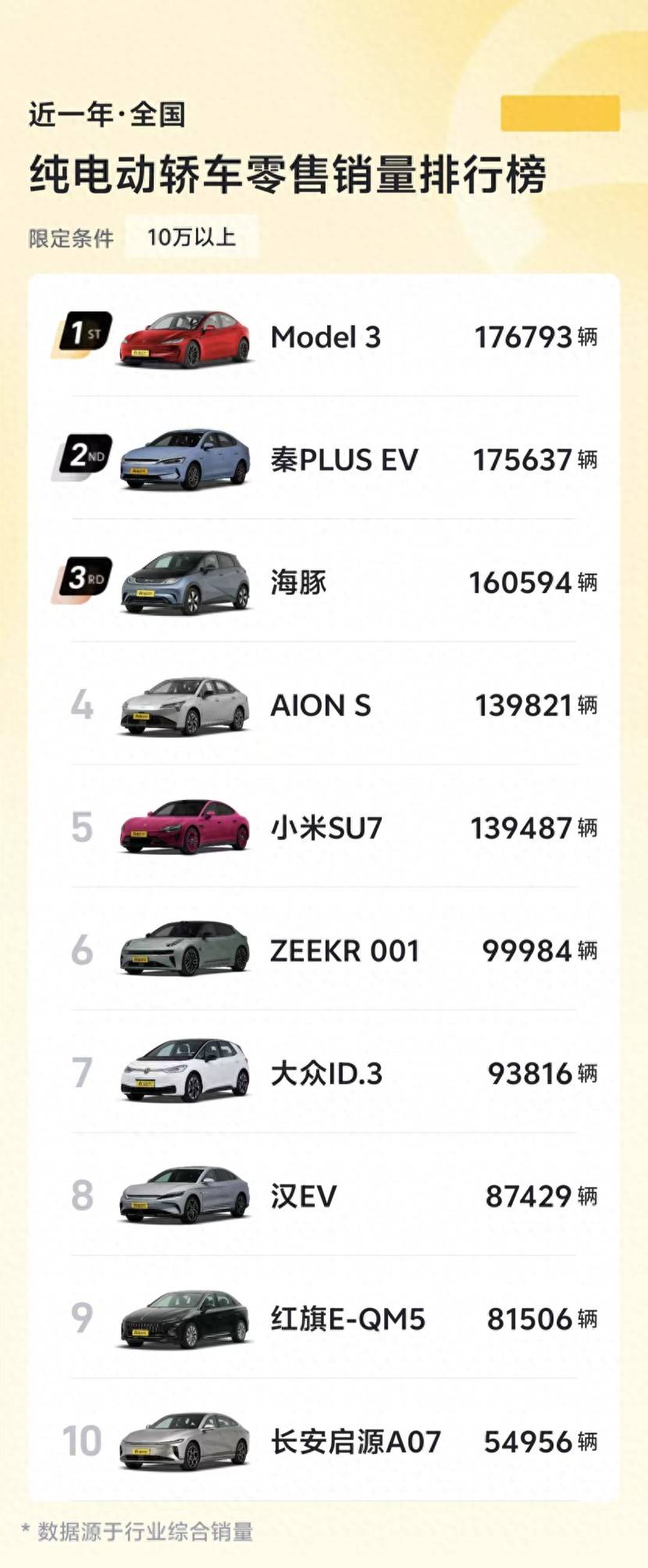 然而有些人不知道的是,特斯拉的另一款暢銷(xiāo)車(chē)型Model 3,在純電轎車(chē)領(lǐng)域也是風(fēng)頭無(wú)兩。即便有小米SU7等一眾對(duì)手追趕,Model 3依然牢牢鎖定2024年中國(guó)豪華純電轎車(chē)銷(xiāo)冠的寶座。事實(shí)上,在所有超過(guò)10萬(wàn)元的純電轎車(chē)?yán)铮u(mài)得最好的就是Model 3。