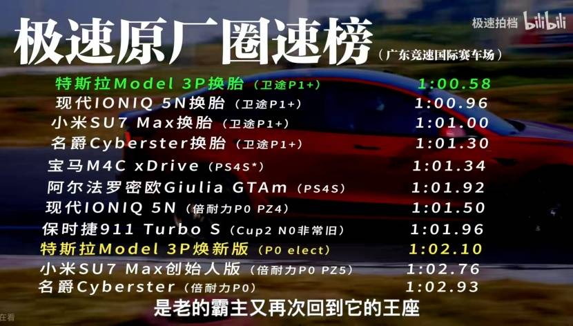 無(wú)數(shù)豪華車(chē)、性能車(chē)的對(duì)比測(cè)評(píng)都證明了這一點(diǎn)。比如新年剛過(guò),全網(wǎng)擁有超1000萬(wàn)粉絲的中國(guó)頭部汽車(chē)自媒體“極速拍檔”就讓Model 3高性能版同小米SU7 Max等其他電車(chē)同場(chǎng)競(jìng)技,結(jié)果Model 3高性能版成為刷新圈速的新霸主,達(dá)到1分00秒58的最佳成績(jī)——“這可是頂級(jí)性能車(chē),像寶馬M Power、像保時(shí)捷911一樣的成績(jī)。”