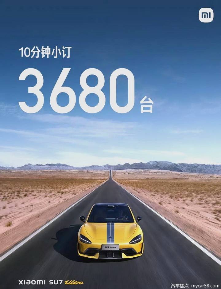 值得一提的是,在雷軍公布銷量目標之前,小米SU7 Ultra就擁有一個令人矚目的預售佳績:10分鐘內訂單量達到3680臺。這一數字不僅彰顯了小米品牌的號召力和SU7 Ultra的市場潛力,也為雷軍設定的1萬臺銷量目標增添了幾分信心。