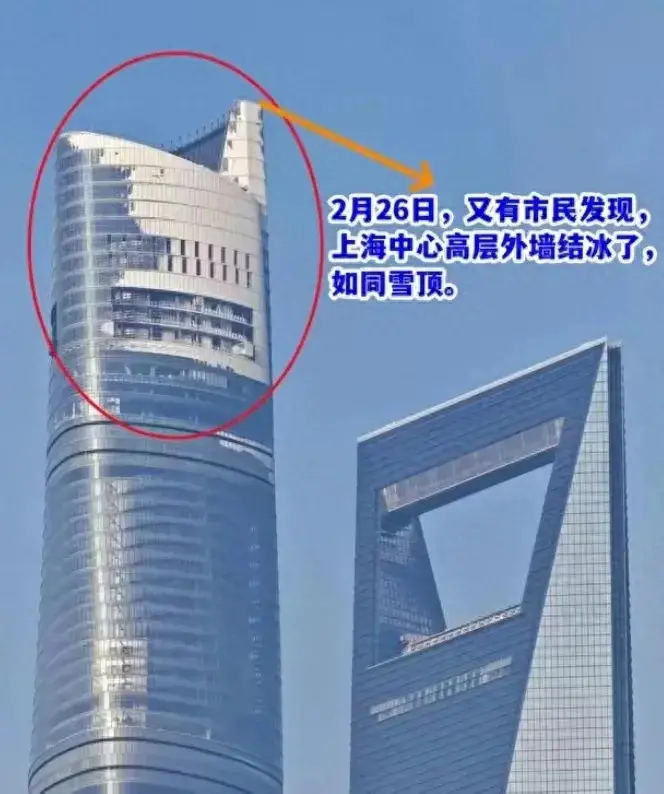 現(xiàn)象初現(xiàn)在 2024年的早春,(近日)中國最高的建筑——上海中心大廈,以一種罕見的方式吸引了公眾的目光。近日,有網(wǎng)友發(fā)布視頻顯示,上海中心大廈的高層被白霜覆蓋,仿佛一夜之間,摩天大樓與北極風光無縫對接。這一現(xiàn)象不僅在社交媒體上引發(fā)了廣泛的關注和討論,也讓人們再次對極端天氣的影響有了直觀的感受。