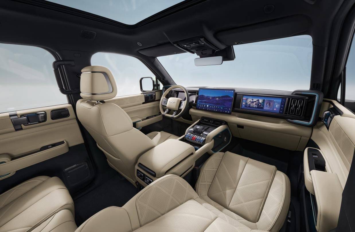 而在配置方面,豹5智駕版車型還增加了后排座椅通風/加熱、后排控制屏、電動方向盤、副駕一鍵放倒等配置,進一步提升用車體驗。同時,其還配備了硬派專屬AI智能座艙,可實現AI智能語音、AI智能影像識別,還支持“方華”手車互聯,支持HUAWEI HiCar。當然非智駕版車型的用戶也不用擔心,后續同樣可以通過OTA升級實現上述座艙功能。