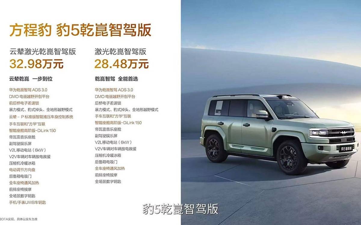 方程豹豹5激光乾崑智駕版,售價28.48萬元;