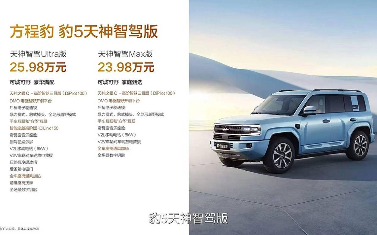 方程豹豹5天神智駕Ultra,售價25.98萬元;